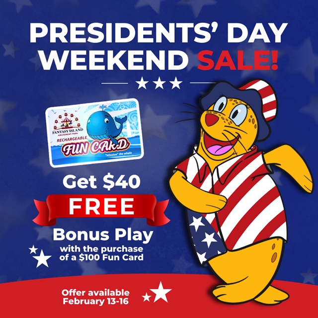 For a limited time this weekend, receive $40 FREE Bonus play with the purchase of a $100 Fun Card.  Offer ends on February 16, 2026  at 11:59pm EST.